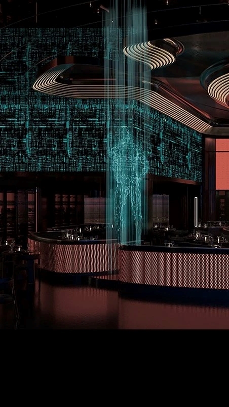 But dining at WOOHOO isn’t just about what’s on your plate. Its futuristic environment, with dynamic blue lighting that shifts in response to the mood, volumetric art installations that blur the lines between physical and digital, and cyberpunk-inspired private lounges like “Spock,” transport guests into a near-future world.